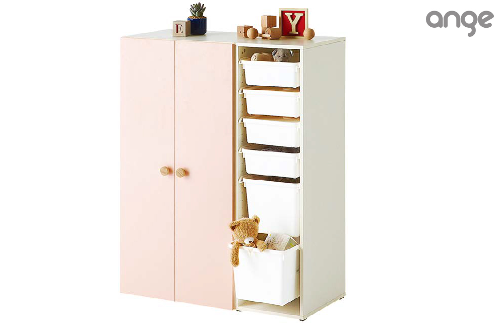 옷과 장난감을 함께 정리할 수 있는 멀티 수납장. 음식 용기로 쓰이는 PP 소재와 E0등급의 친환경 목재를 사용해 안전성을 높였다. 19만 9,000원 한샘(1688-4945, mall.hanssem.com)